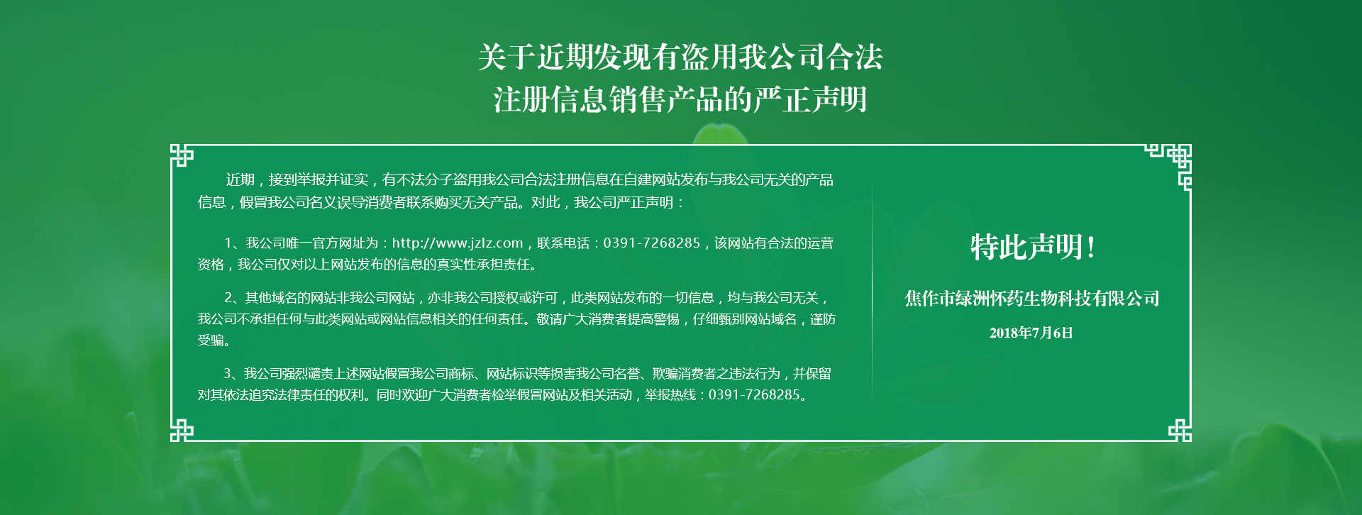 焦作市綠洲懷藥生物科技有限公司是一家以生態農業、生物工程為主產業,集科研、工貿于一體的高科技企業,被省、市、縣科技、財政、農業、技術監督部門列為扶持發展企業,是市、縣級保護企業和“中藥現代化科技產業工程企業”、“河南省科技型中小企業”、“市農業產業化龍頭企業”、“市認定企業技術”“中藥現代化科技產業工程企業”、“河南省質量興企科技創新示范企業”等。